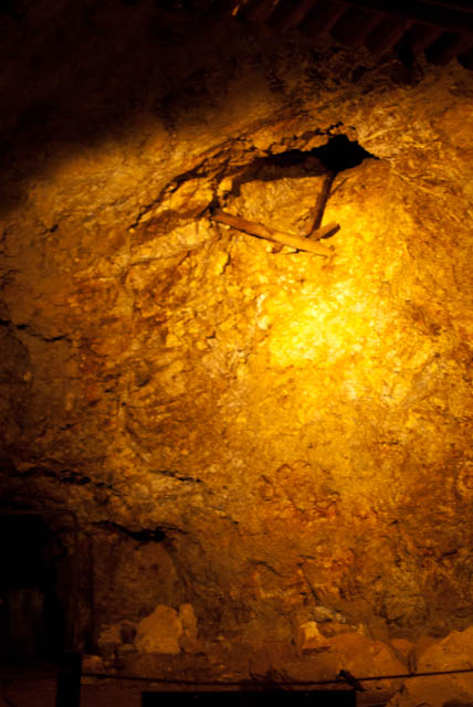 ひんやり涼しい坑内を歩いて行くと塞がれている場所があります。